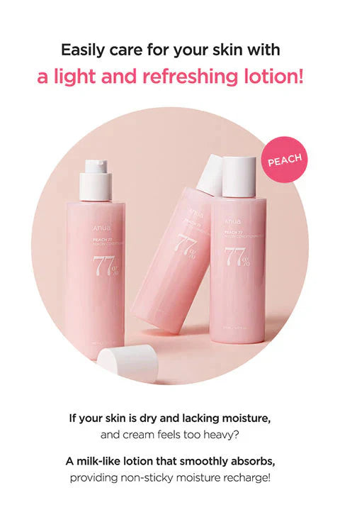 Descripción: Anua Peach 77% Niacin Conditioning Milk es una emulsión facial ligera y refrescante que hidrata, fortalece y revitaliza la piel con un 77% de extracto de melocotón y un 2% de niacinamida. Su fórmula rica en antioxidantes y vitaminas mejora la barrera cutánea, proporcionando luminosidad, firmeza e hidratación duradera sin obstruir los poros.