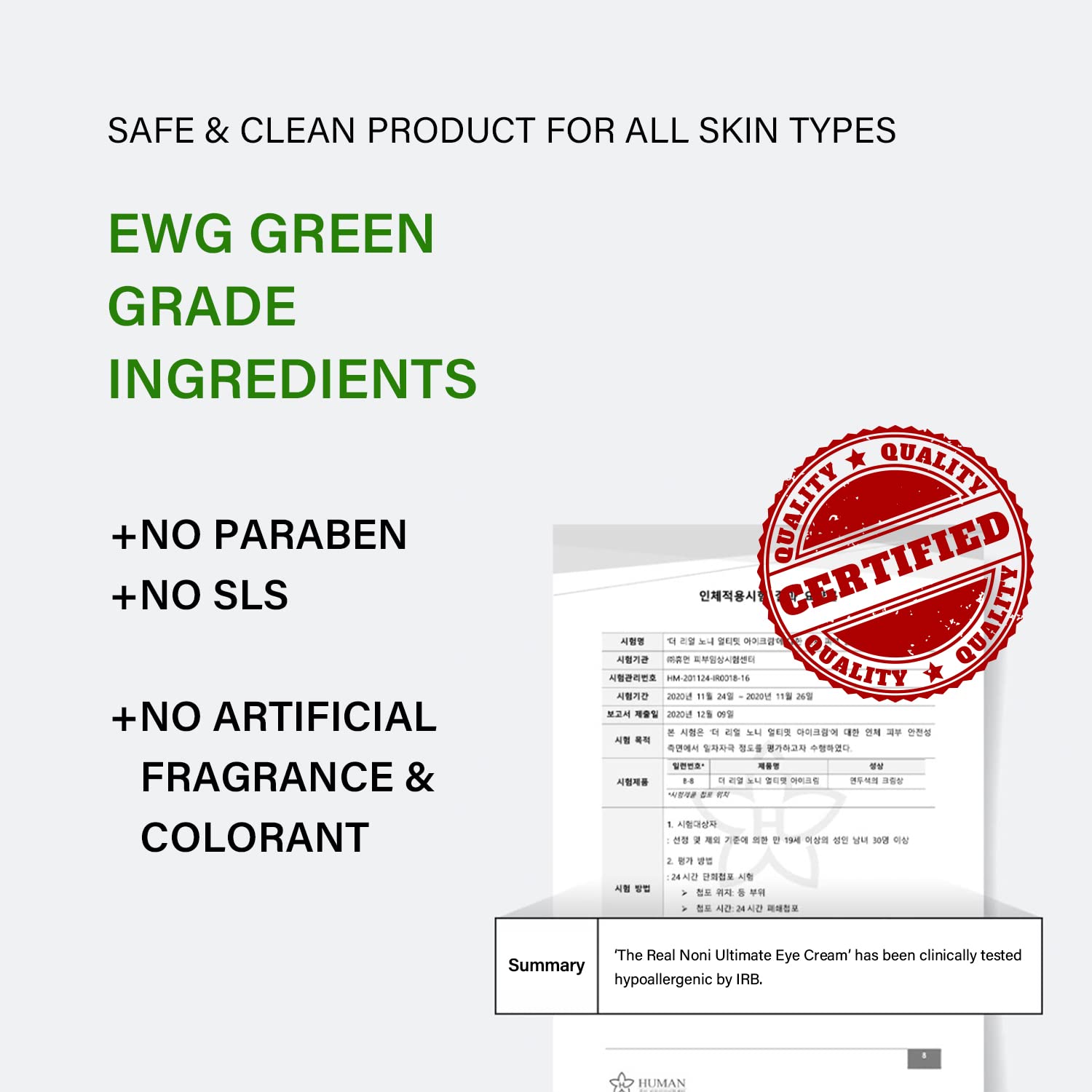 Descripción: Celimax The Real Noni Ultimate Eye Cream es una crema de alto rendimiento para el contorno de ojos, formulada con un 36,26 % de extracto de fruta de noni, rico en antioxidantes, vitaminas y minerales que iluminan, hidratan y revitalizan la piel sensible de la zona ocular. Incorpora bakuchiol, una alternativa vegetal al retinol, para combatir las arrugas sin irritar, y péptidos como Argireline y Copper Tripeptide-1 que refuerzan la firmeza y elasticidad. Su textura ligera se absorbe rápidamente, ideal para uso diario en todo tipo de piel, incluso las más sensibles.