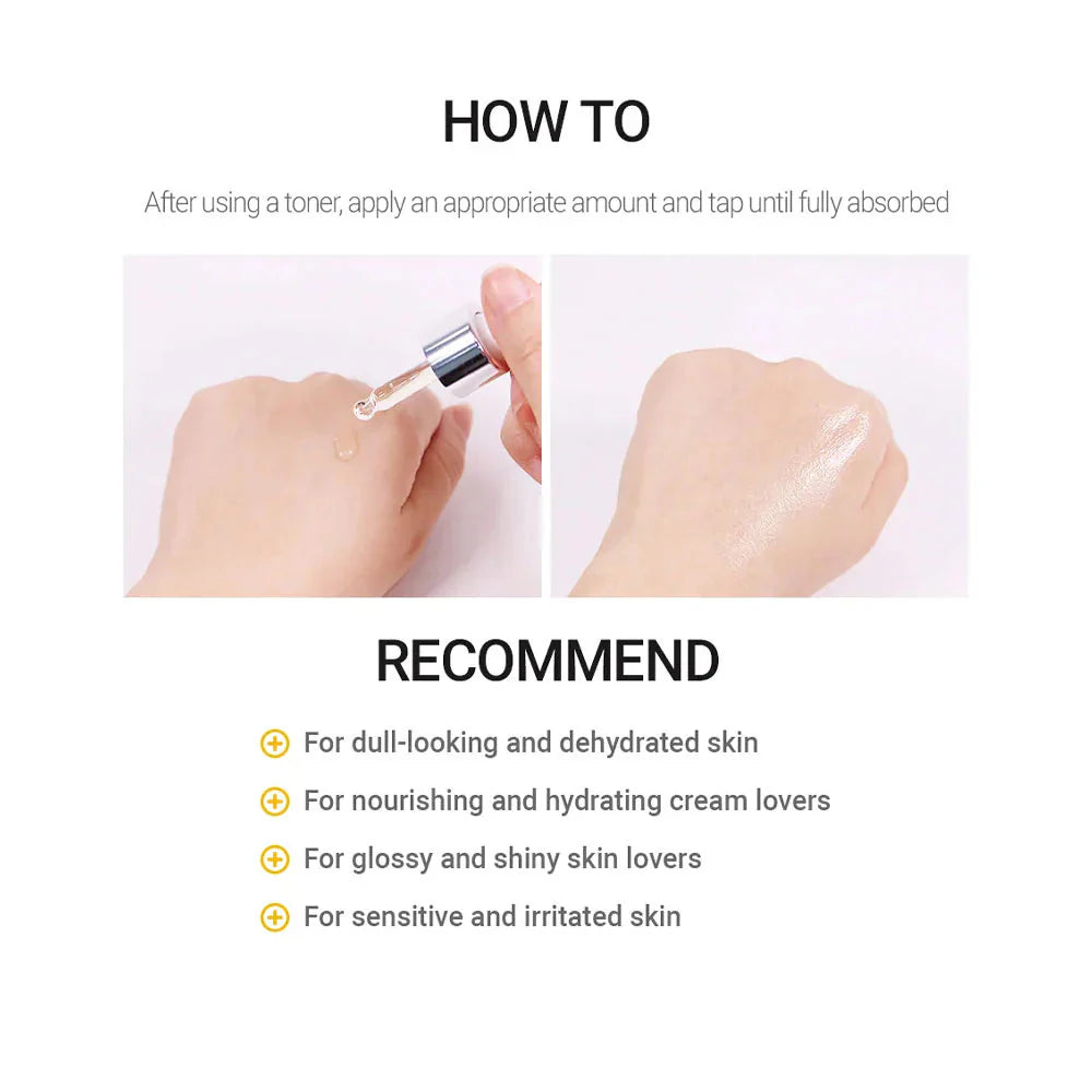 Ingredientes: Extracto de propóleo (33,5 %), extracto de Portulaca oleracea, butilenglicol, extracto de fruto de Hippophae rhamnoides (10 %), pantenol (5 %), agua de flor de Rosa centifolia, niacinamida (4 %), 1,2-hexanodiol, ácido 3-O-etil ascórbico (1 %), extracto de Hamamelis virginiana (hamamelis), extracto de Centella asiática, extracto de jalea real, extracto de Spirodela polyrhiza, hialuronato de sodio, carbómero, arginina, agua, glicirrizato dipotásico, fenoxietanol, hidroxietilcelulosa, adenosina