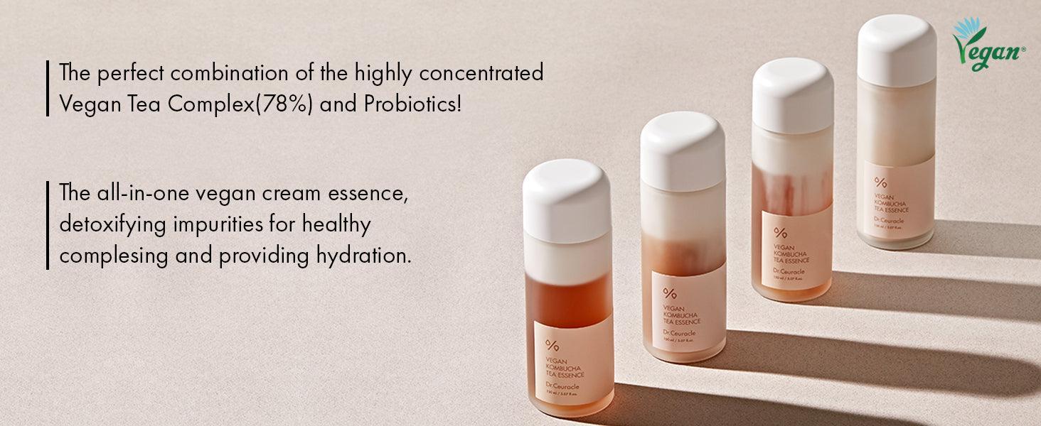 Descripción: Dr.Ceuracle VEGAN KOMBUCHA TEA ESSENCE es un innovador híbrido entre esencia y crema, diseñado para ofrecer un cuidado multiusos y profundamente equilibrante. Con una textura ligera tipo tónico, esta fórmula vegana y desintoxicante purifica la piel mientras mejora su hidratación y vitalidad.