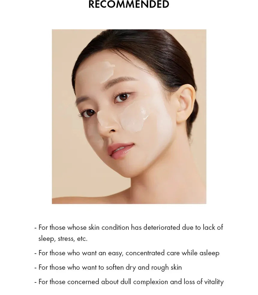 Con una textura tipo crema que se funde como mantequilla, esta mascarilla se absorbe fácilmente sin dejar residuos, permitiéndote disfrutar de una noche de descanso mientras tu piel se regenera.