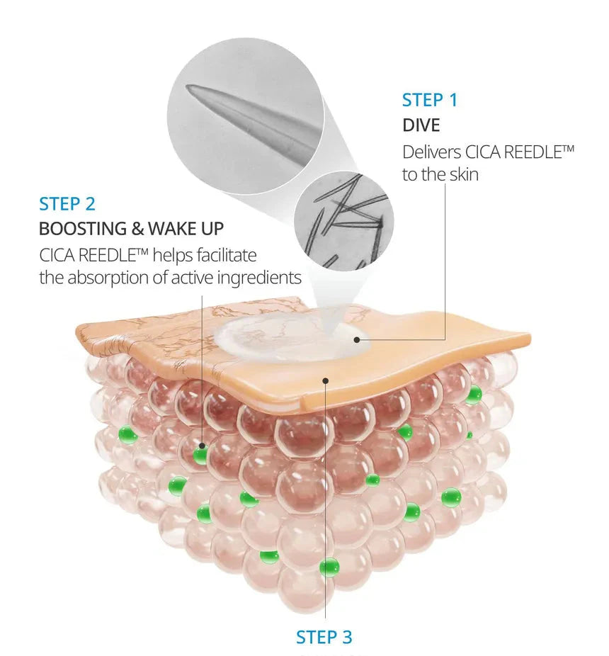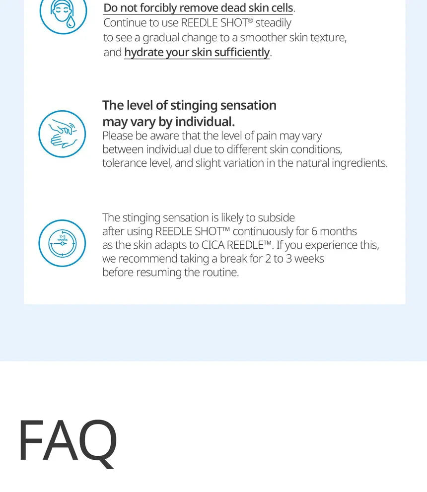 ⚠ Nota: Es normal sentir un ligero hormigueo debido a la penetración de las microagujas. Puede haber una leve sensación de enrojecimiento o picor, que desaparece con el tiempo.