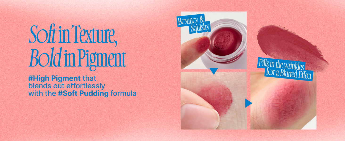 Descripción: fwee Lip & Cheek Blurry Pudding Pot es un producto multifuncional que puede aplicarse tanto en los labios como en las mejillas para conseguir un acabado suave, difuminado y natural. Su textura tipo pudding se desliza fácilmente sobre la piel, permitiendo modular la intensidad del color desde un toque sutil hasta un look más marcado. Enriquecido con Manteca de Semilla de Cacao y Extracto de Hoja de Agave Tequilana, hidrata y suaviza la piel mientras mantiene una sensación ligera y cómoda durante todo el día. Disponible en 6 colecciones de tonos que permiten crear estilos versátiles, desde frescos y cotidianos hasta sofisticados y elegantes.