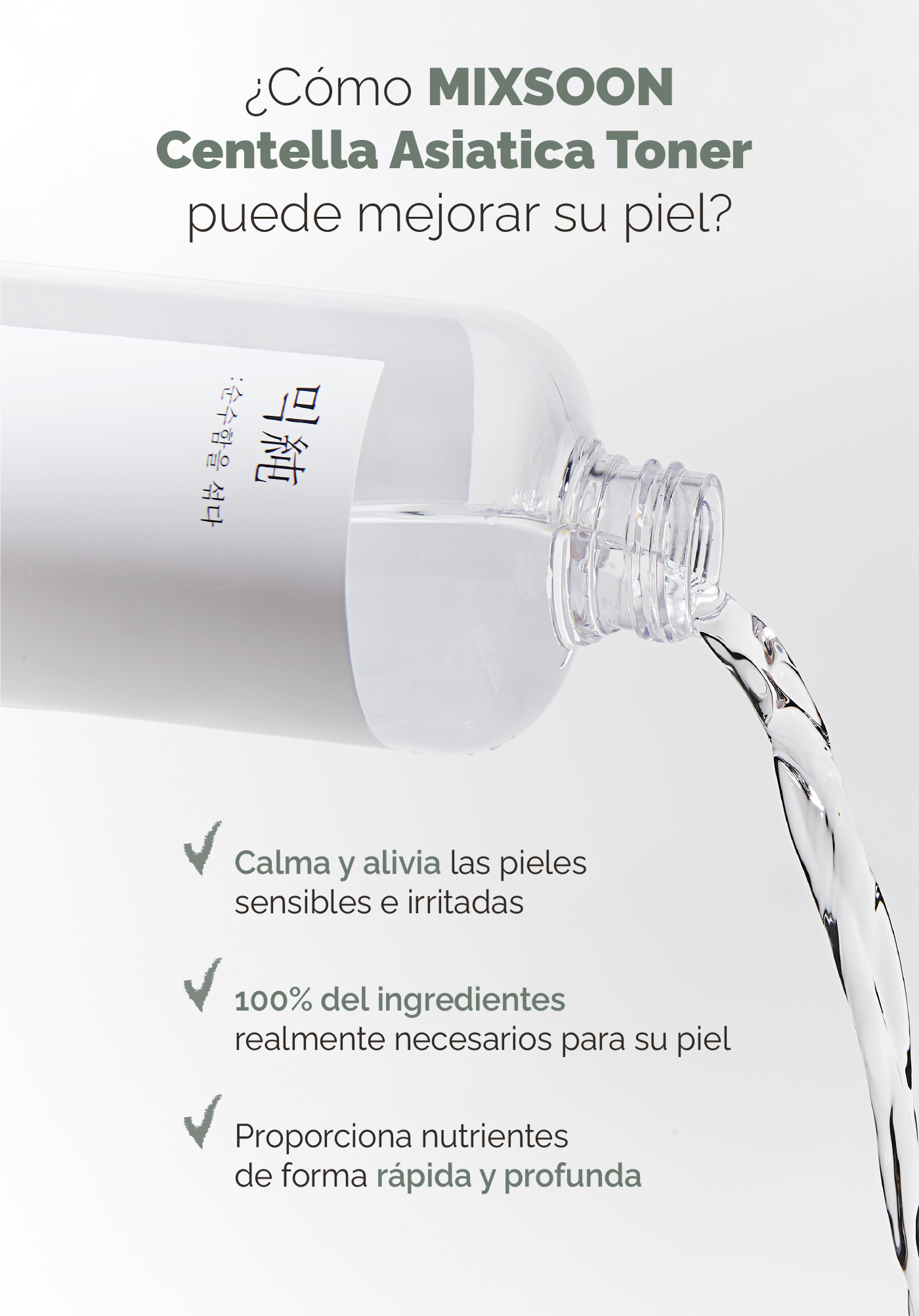 Descripción : Es un multi-tónico que limpia la suciedad de la piel y rellena la hidratación al mismo tiempo. No contiene colorante ni fragancia para que no irrite la piel. Calma la piel con ingredientes de Centella Asiática 100% sin diluir para darle a la piel una eficiencia más maravillosa. Tiene una sinergia si se usa con mixsoon Centella Asiatica Essence.