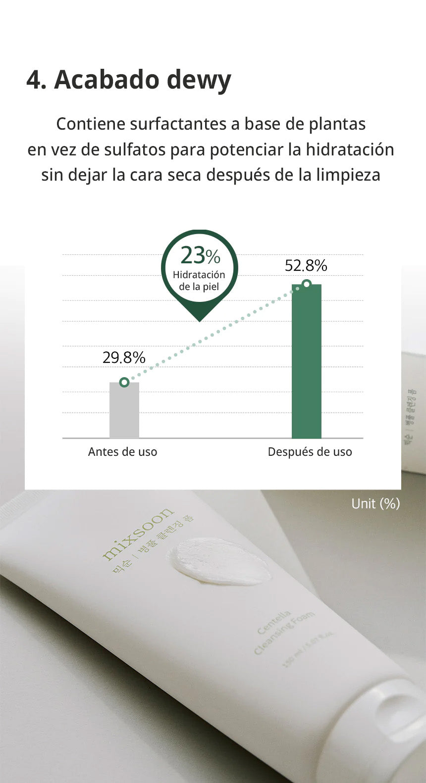 Descripción : mixsoon Centella Cleansing Foam es un limpiador facial en espuma: formulado específicamente para responder a las necesidades de la piel sensible. Esta solución ligeramente ácida no solo se ajusta al pH de la piel para promover su bienestar, sino que también respeta la integridad de la barrera cutánea y la flora beneficiosa, asegurando una limpieza eficaz sin irritación.