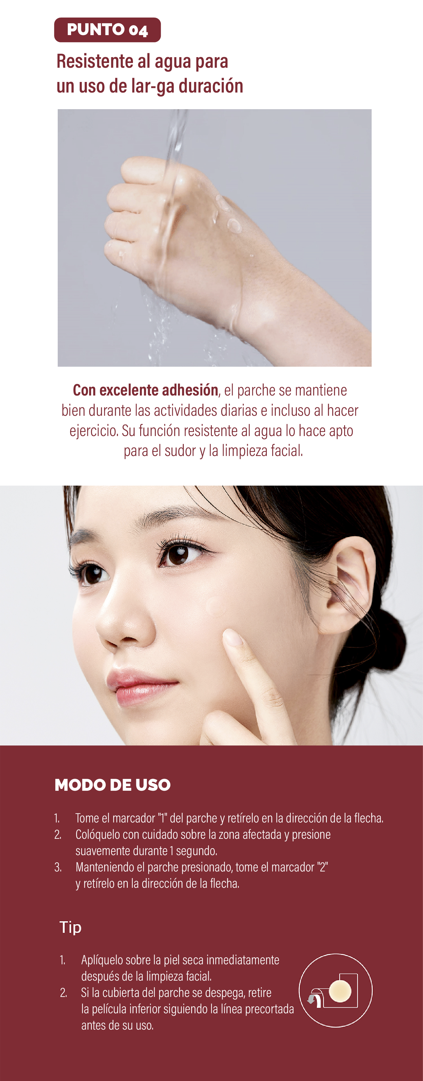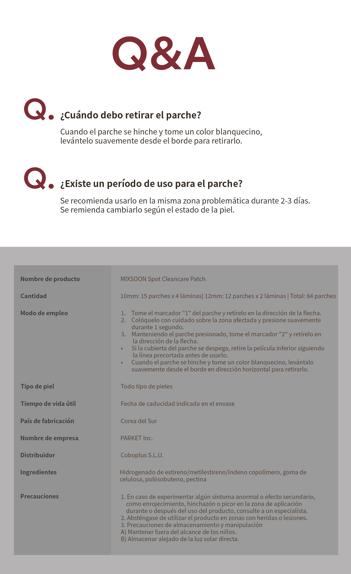Descripción : mixsoon Spot Clean Care Patch es un parche eficaz para el cuidado del acné. Oculta y cura el acné con estos parches ultradelgados, casi indetectables en la piel. Gracias a su potente adherencia a la piel, evita que entre el agua y protege los granos de las bacterias mientras absorbe el exceso de sebo y pus para acelerar la cicatrización y que cure más rápido. Se puede usar por el día y/o la noche.
