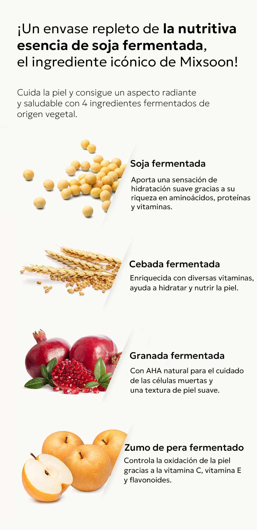 Granada fermentada: Contiene AHA natural, ayudando a exfoliar suavemente y mejorar la textura de la piel.