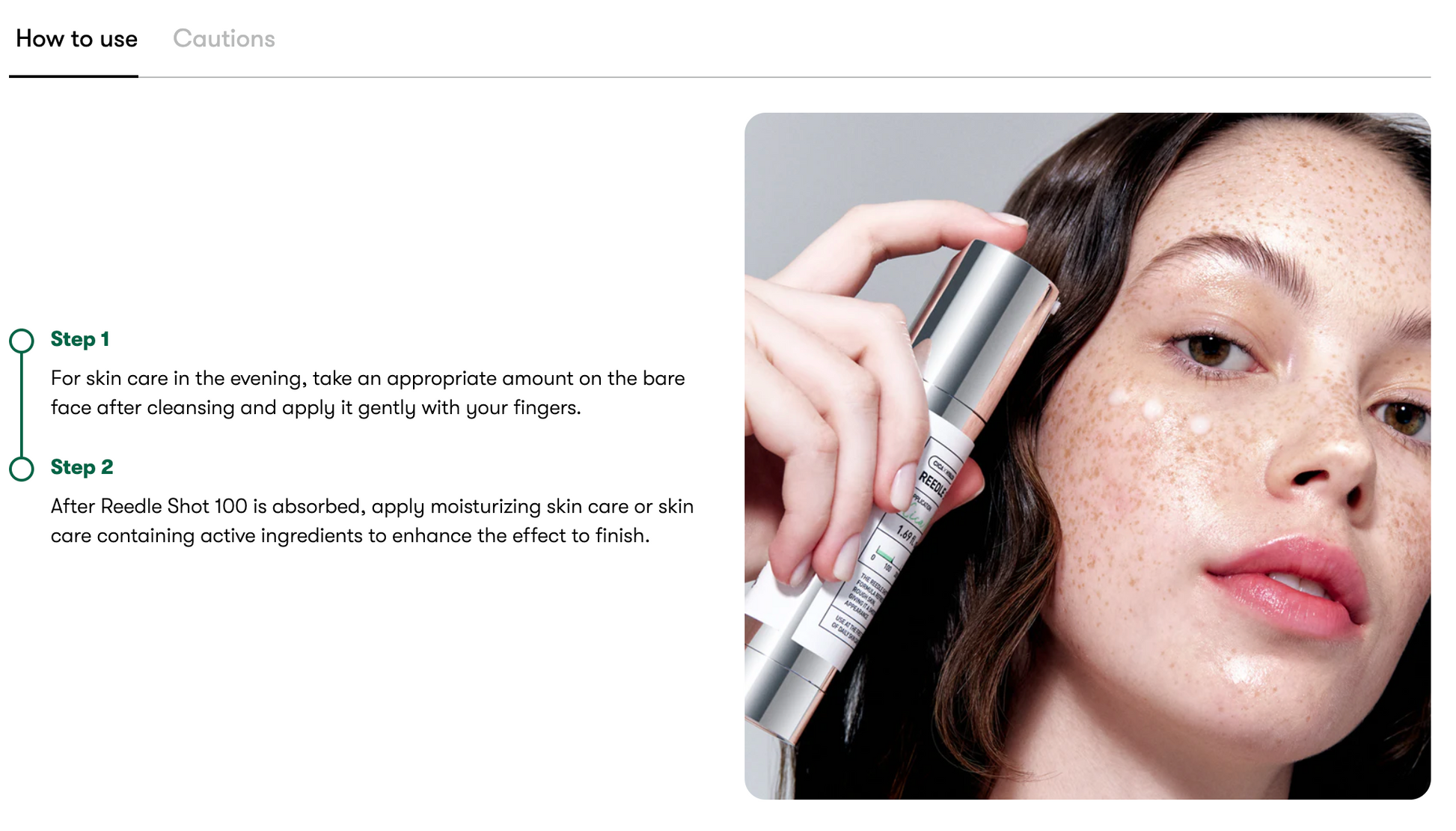 - Aplicar una cantidad adecuada de 100 REEDLE SHOT STICK en la piel.