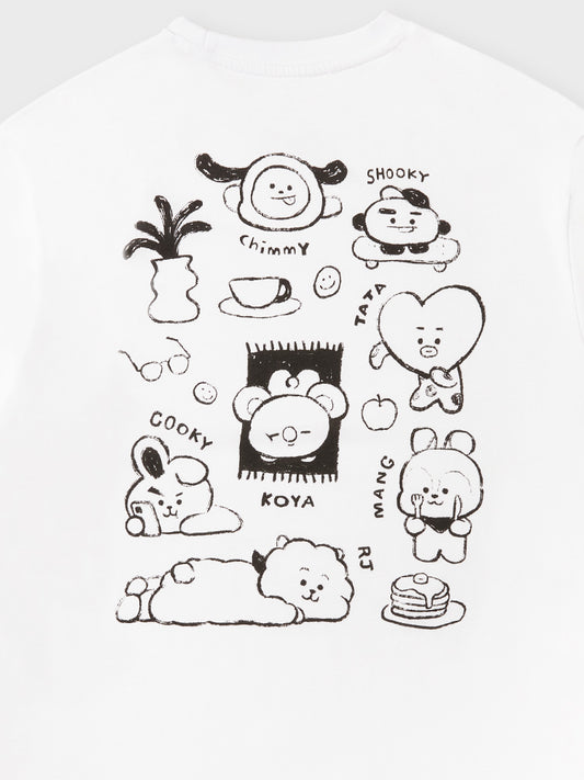 BT21 BASIC DRAWING SHORT SLEEVE TSHIRT WHITE SHOOKY